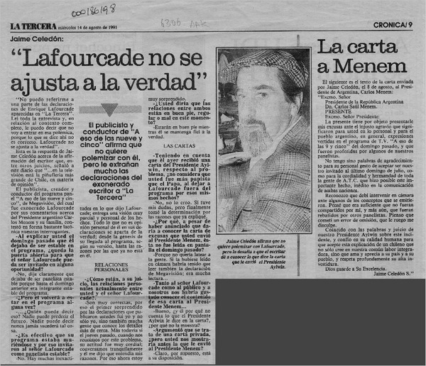 Celedón, "Acepté la renuncia de Lafourcade" [artículo].