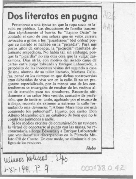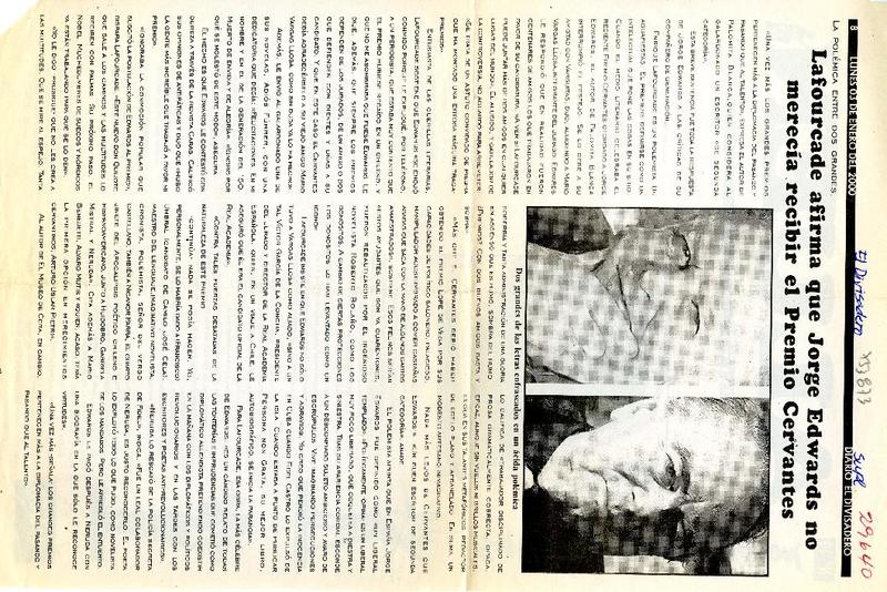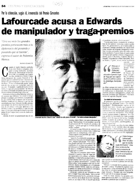 Violenta batalla literaria de Jorge Edwards y Enrique Lafourcade contra Sepúlveda [artículo] Consuelo Hurtado.