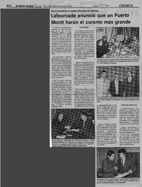 Autores chilenos - Lafourcade, Enrique - Pérez, Floridor - Pincheira, Dolores - Huidobro, Patricio - González-Urizar, Fernando - Gilchrist, Duncan - Chiloé, paraíso de viento y lluvia - Sabiduría de la luz - Re volver - Escriba sentado - Chile contado y cantado - Campanas del recuerdo