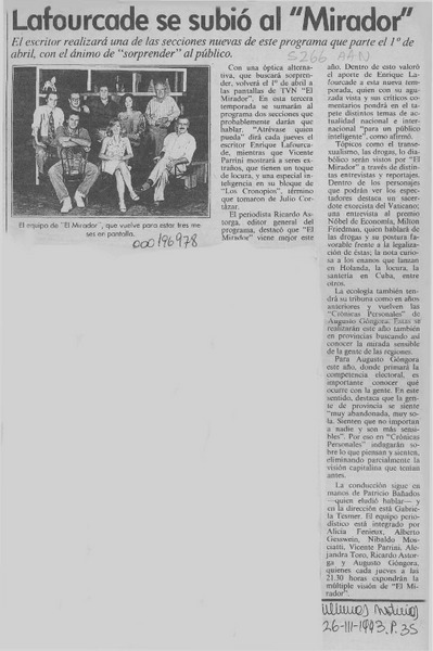 Bienvenido, Lafourcade. [artículo]