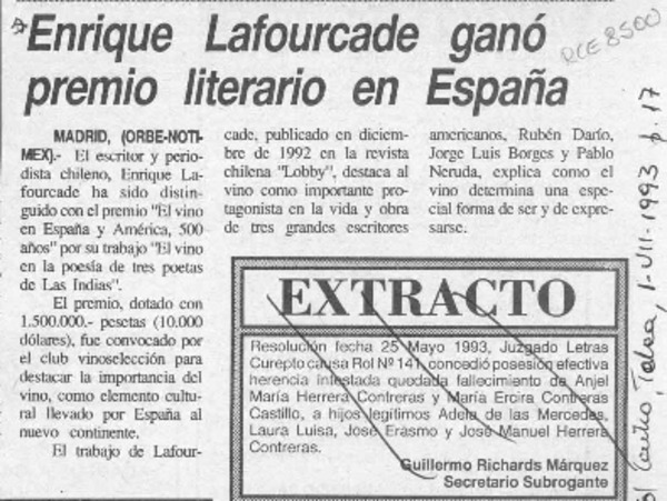 Autores chilenos - Lafourcade, Enrique - Lihn, Enrique - Edwards, Jorge - Premios literarios