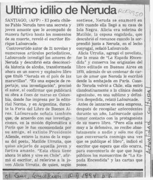 Ultimo idilio de Neruda [artículo].