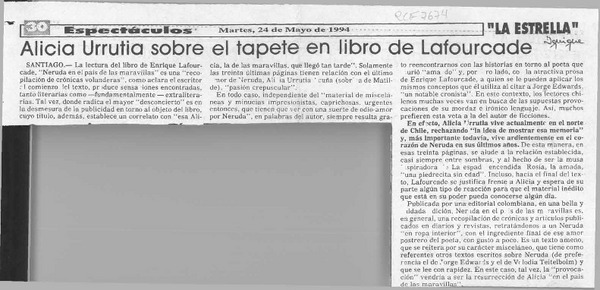 Alicia Urrutia sobre el tapete en libro de Lafourcade [artículo].