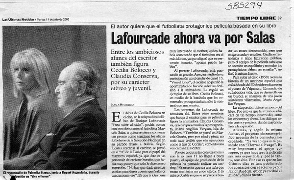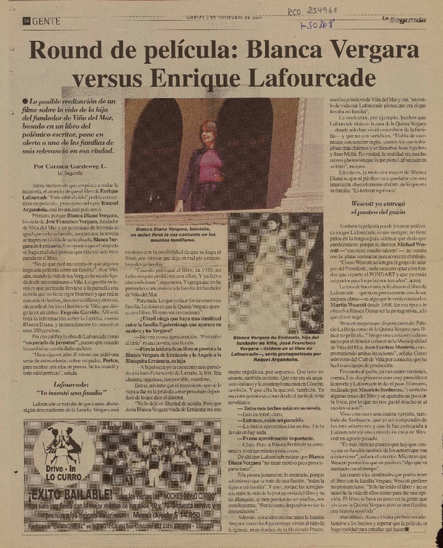 Cecilia Bolocco estudia oferta de Lafourcade para debutar en cine [artículo] Rafael Valle M.