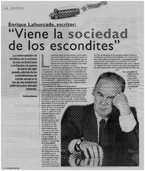 Viene la sociedad de los escondites" : [entrevistas] [artículo] Rodrigo Alvarez.