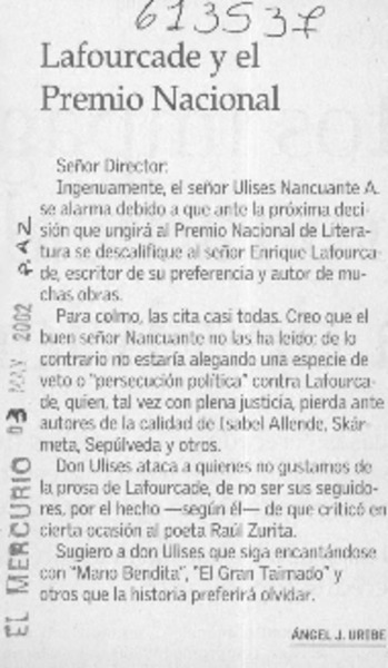 Yo defiendo a Lafourcade [artículo] Luis Labrín Pacheco.