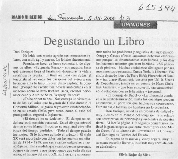 Carta a Enrique Lafourcade [artículo] Eliana de Núñez.