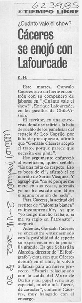 Cáceres se enojó con Lafourcade [artículo] K. H.