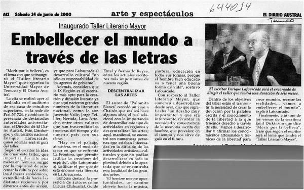 Capital poética de Chile desean para Temuco. [artículo]