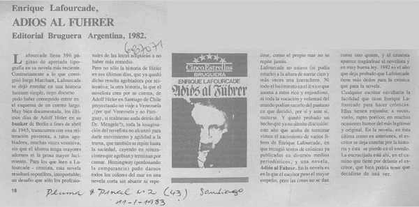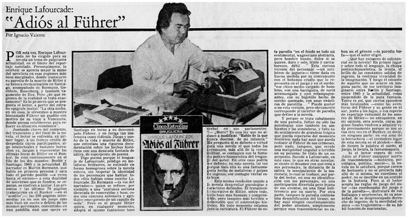 Lafourcade, Enrique - Autores chilenos - Adiós al Führer - Entrevista