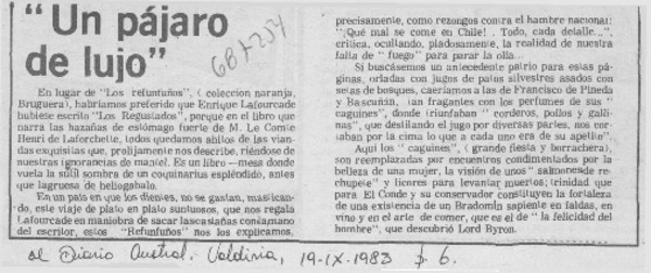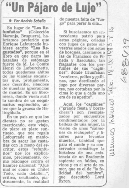 Un pájaro de lujo" [artículo] Andrés Sabella.