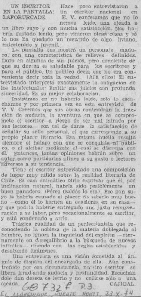 Un escritor en la pantalla, Lafourcade [artículo] Cajigal.