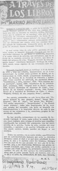 Lafourcade, Enrique - Autores chilenos - Cassigoli, Armando - Antología del nuevo cuento chileno