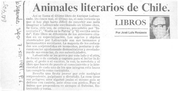 Autores chilenos - Lafourcade, Enrique - "Animales literarios chilenos"