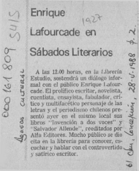 Autores chilenos - Gaete Briseño, Alfredo - Lafourcade, Enrique - Entrevistas