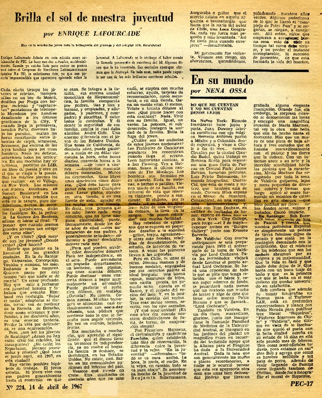 Brilla el sol de nuestra juventud [artículo] Enrique Lafourcade.