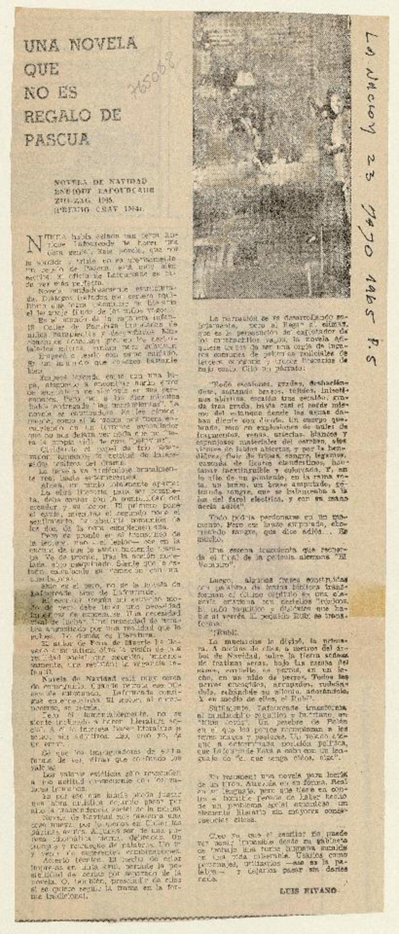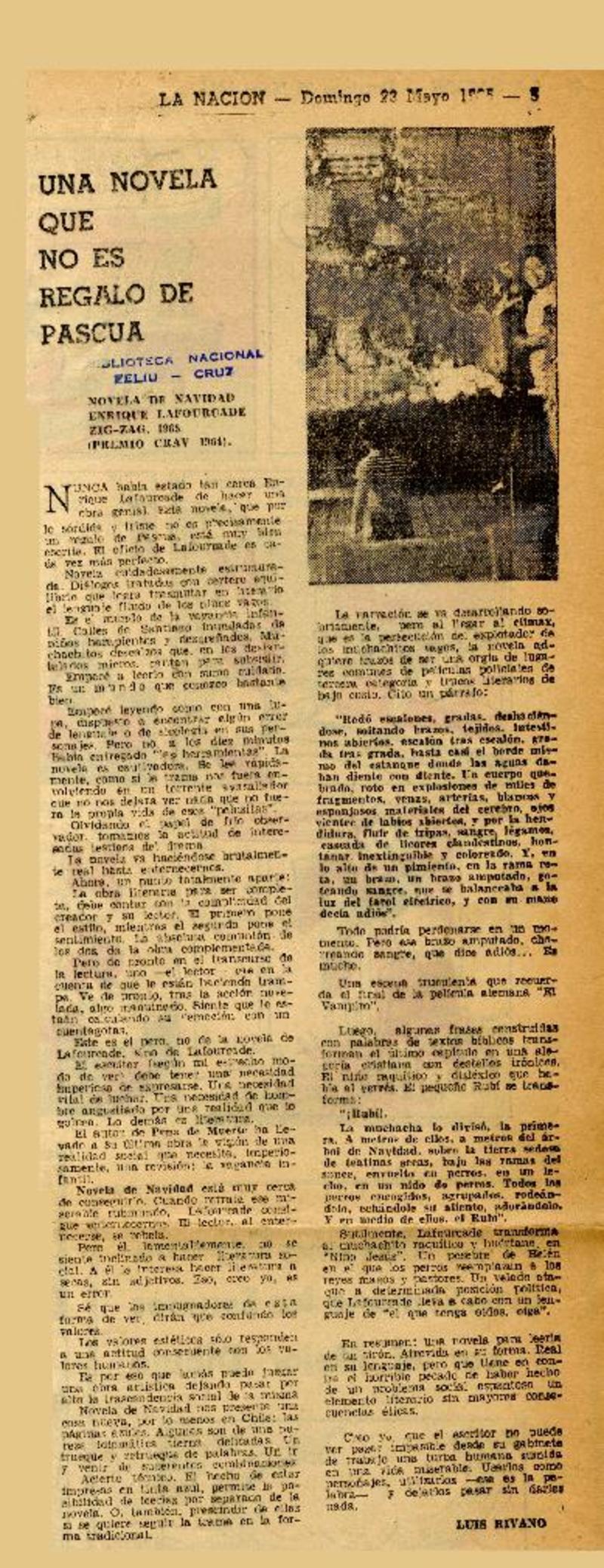 Una novela que no es regalo de pascua [artículo] Luis Rivano.