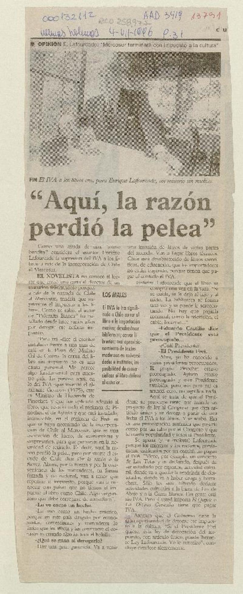Apoya la posición de E. Lafourcade [artículo] Samuel García C.