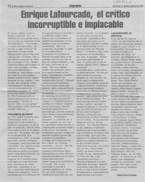 Enrique Lafourcade, el crítico incorruptible e implacable [artículo] Mario Noceti Zerega