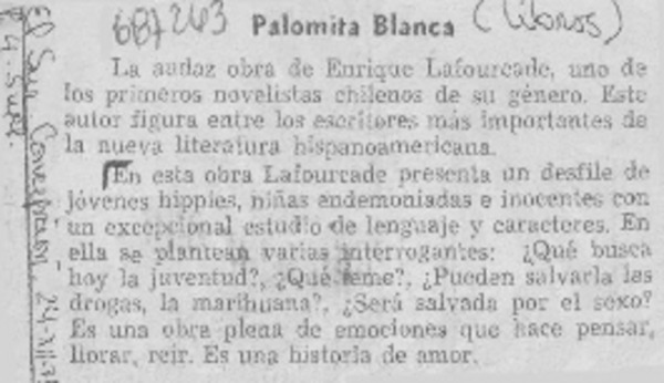 Autores chilenos - Lafourcade, Enrique - Palomita blanca