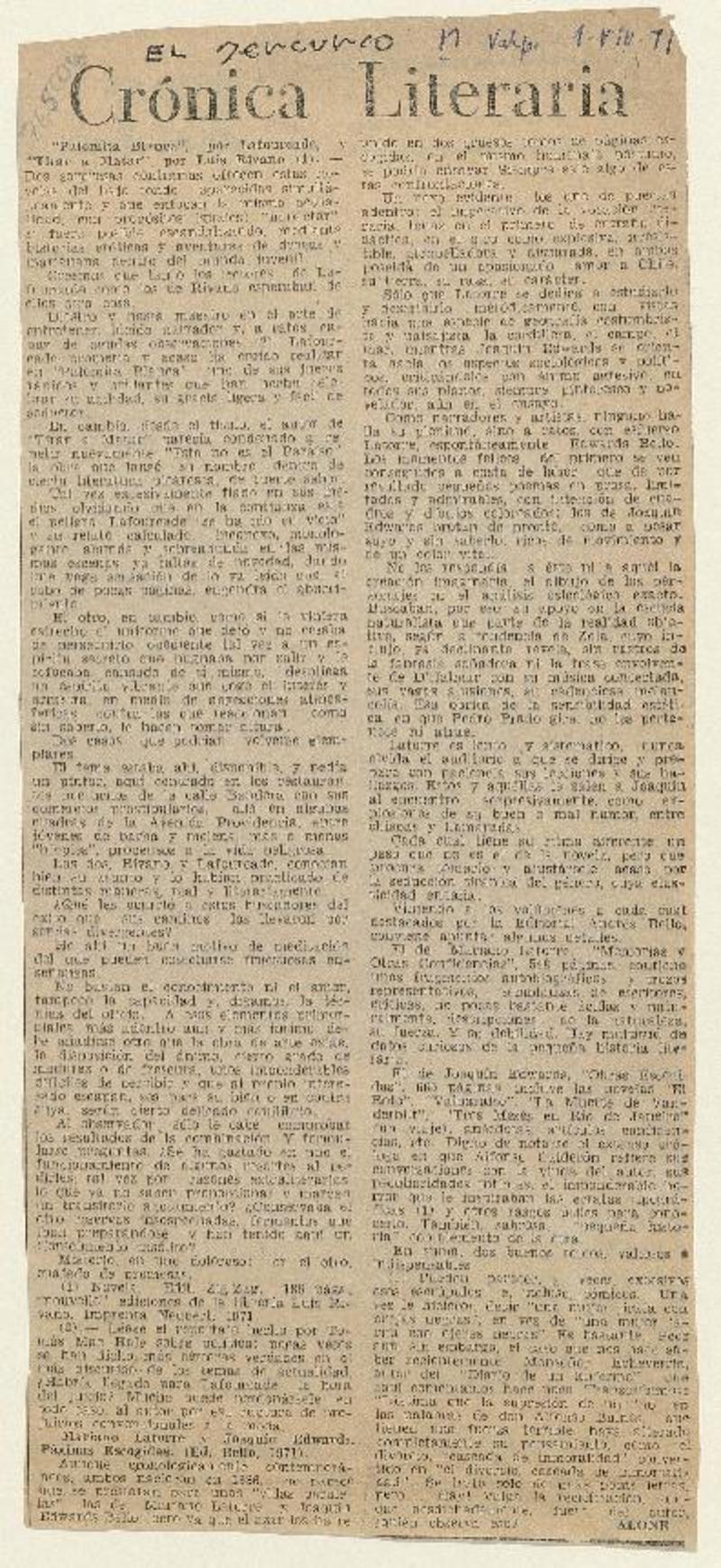 Palomita blanca", de Enrique Lafourcade [artículo] Hugo Rolando Cortés.