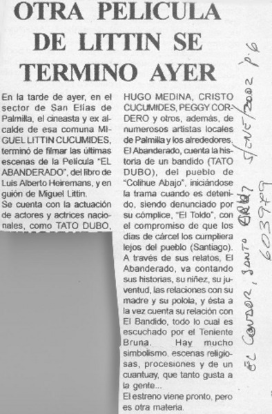 Littín aspira ahora a Cannes y Berlín [artículo] Christian Ramírez
