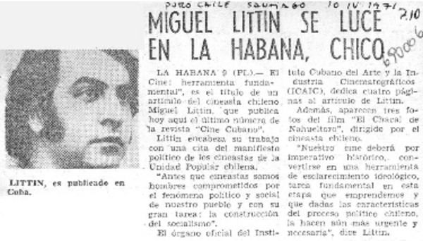 Miguel Littin, "ayudaremos a crear un cine nacional" [artículo] O. R.