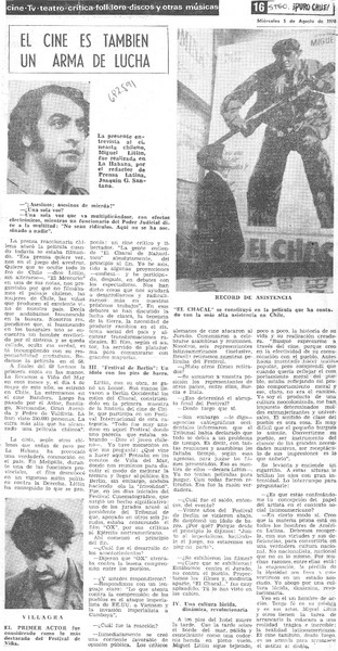 Miguel Littin: "el arte drámatico es un arma de lucha y de denuncia". [artículo]
