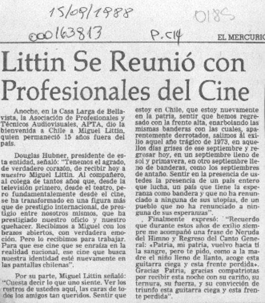 Miguel Littin responde a los cargos [artículo] Miguel Angel Fredes.