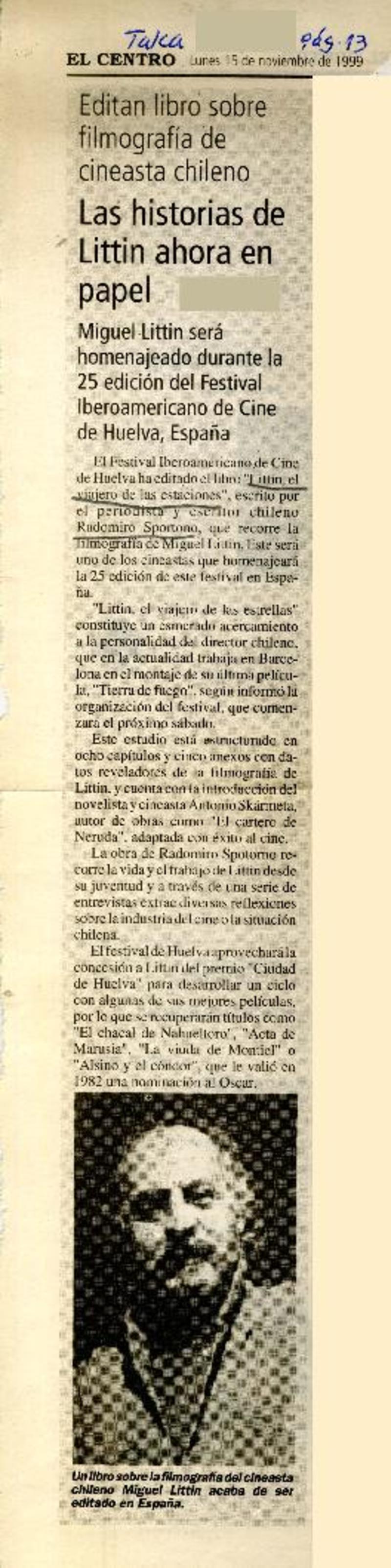 Cineasta chileno Miguel Littin publicó en España [artículo].