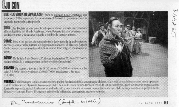 "La viuda de Apablaza" una obra fundamental regresa a escena [artículo] : Eduardo Miranda.