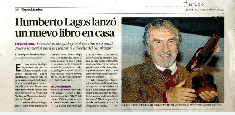 Humberto Lagos lanzó un nuevo libro en casa [artículo] E. Henríquez e Israel Sanhueza.