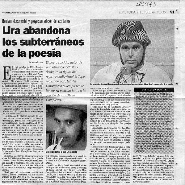 Lira abandona los subterráneos de la poesía [artículo] Andrés Gómez.