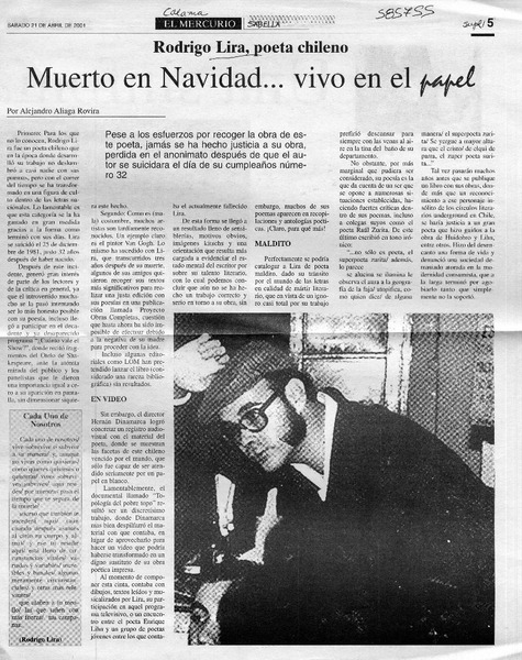 A 25 años de su muerte Rodrigo Lira vuelve a sacar la voz [artículo] Leonardo Sanhueza.