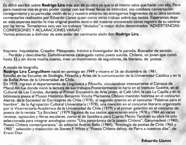 Es difícil escribir sobre Rodrigo Lira -- [artículo] Eduardo Llanos.