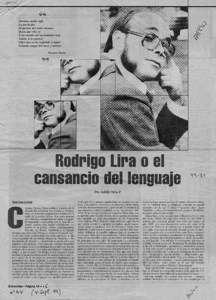 Rodrigo Lira o el cansancio del lenguaje [artículo] Adolfo Vera P.