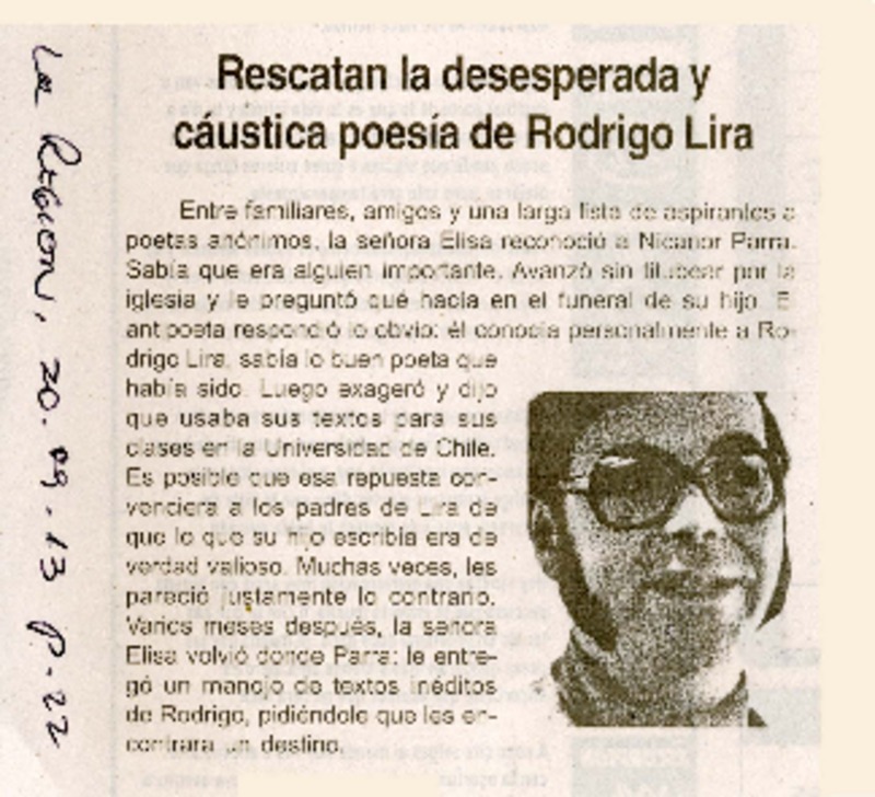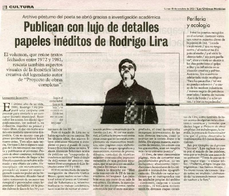 Publican con lujo de detalles papeles inéditos de Rodrigo Lira [artículo] Leonardo, Sanhueza.