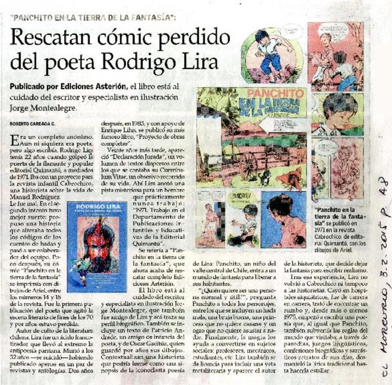 Rescatan cómic perdido del poeta Rodrigo Lira [artículo] Roberto Careaga C.