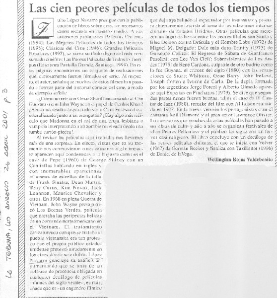 Las cien peores películas de todos los tiempos [artículo] Wellington Rojas Valdebenito