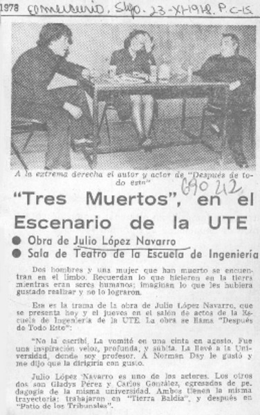 Tres muertos", en el escenario de la UTE. [artículo]