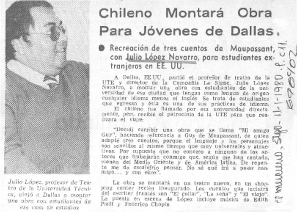 Chileno montará obra para jóvenes de Dalla. [artículo]