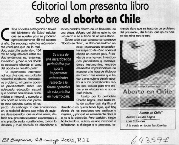 Autoras chilenas - Lagos, Claudia - Aborto en Chile - retr
