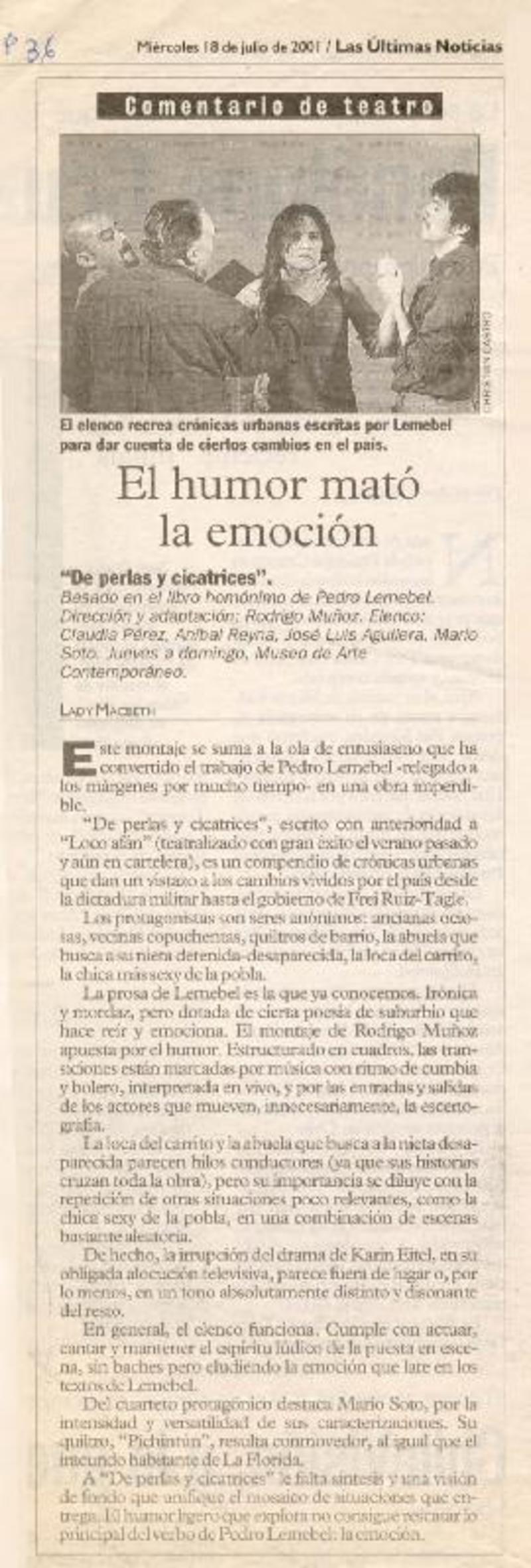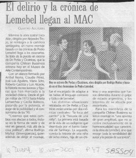 Las "perlas y cicatrices" de Lemebel a escena [artículo] Andrea González