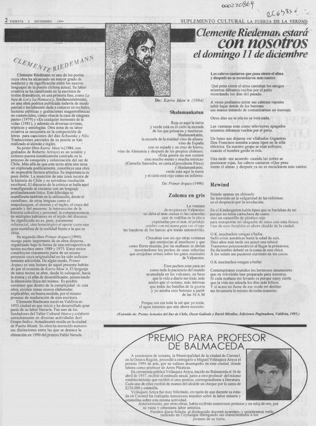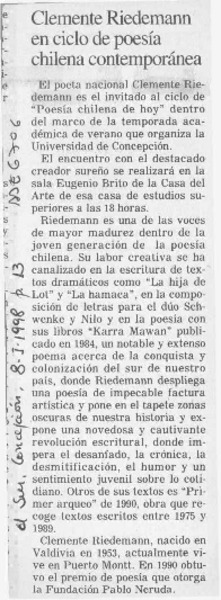 Clemente Riedemann en ciclo de poesía chilena contemporánea [artículo].
