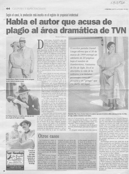 Habla el autor que acusa de plagio al área dramática de TVN [artículo] Estela Cabezas