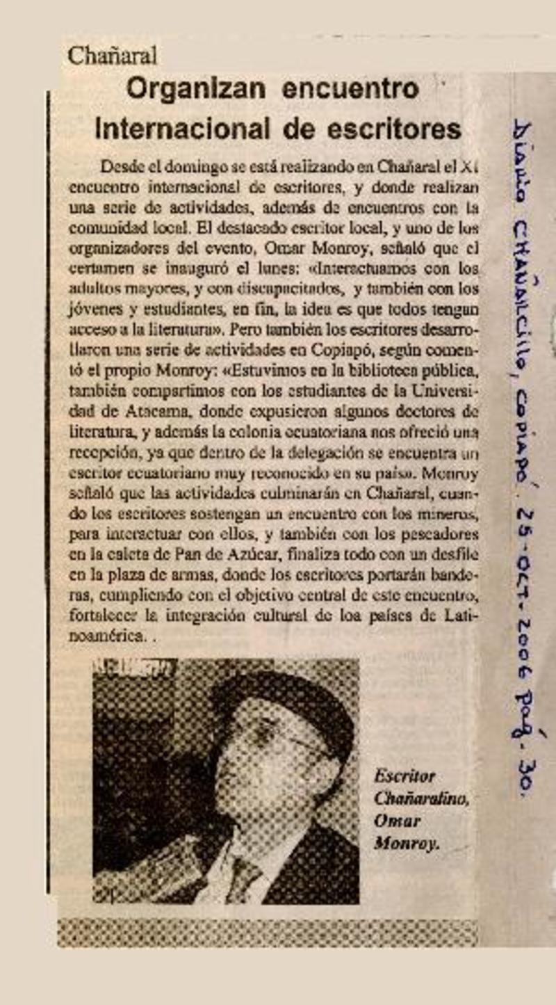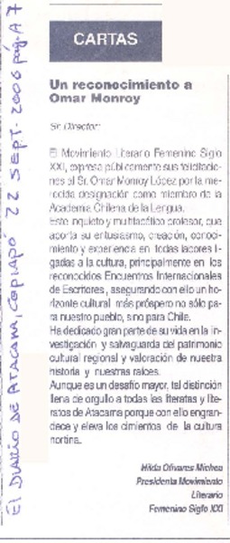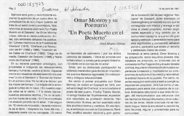 Omar Monroy y Chañaral [artículo] Por Medardo Cano Godoy.
