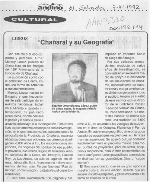 Autores chilenos - Monroy López, Omar - "Chañaral y su geografía"