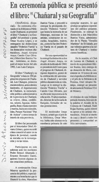 En ceremonia pública se presentó el libro "Chañaral y su geografía" [artículo]