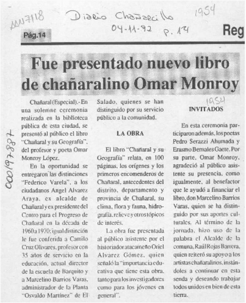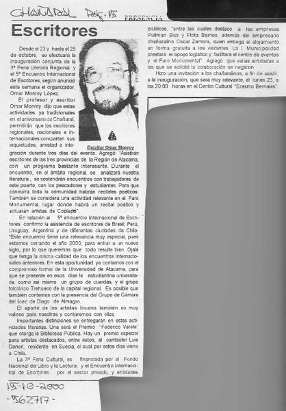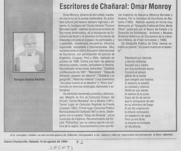 Escritores de Chañaral: Omar Monroy [artículo] Benigno Ávalos Ansieta