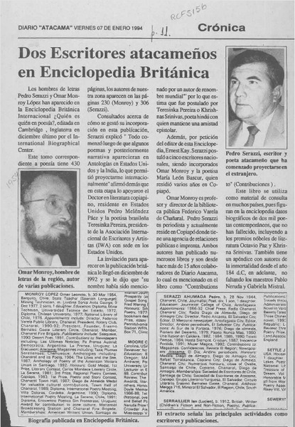 Dos escritores atacameños en Enciclopedia Británica [artículo].